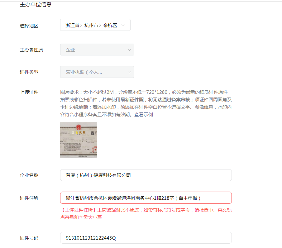 比对不通过 半角全角都修改了 地址和公司名称与营业执照上都一致 一致比对不通过