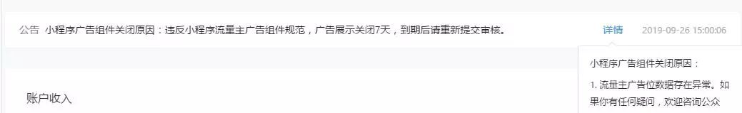 昨天更新了一个版本,今天就通知广告组件关闭,是不是误封了或者告诉下具体原因,个人做的小程序,生活不易呐