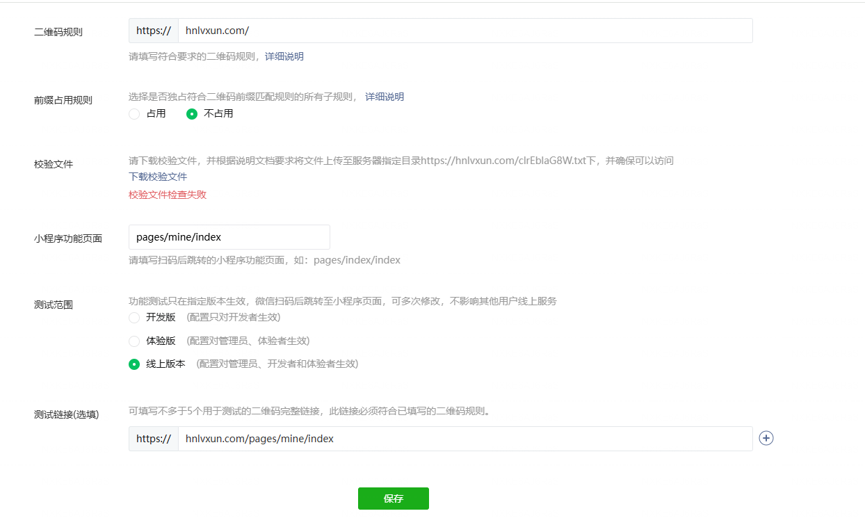 配置扫普通链接二维码打开小程序,一直校验文件检查失败,curl可以显示内容,这是怎么回事?