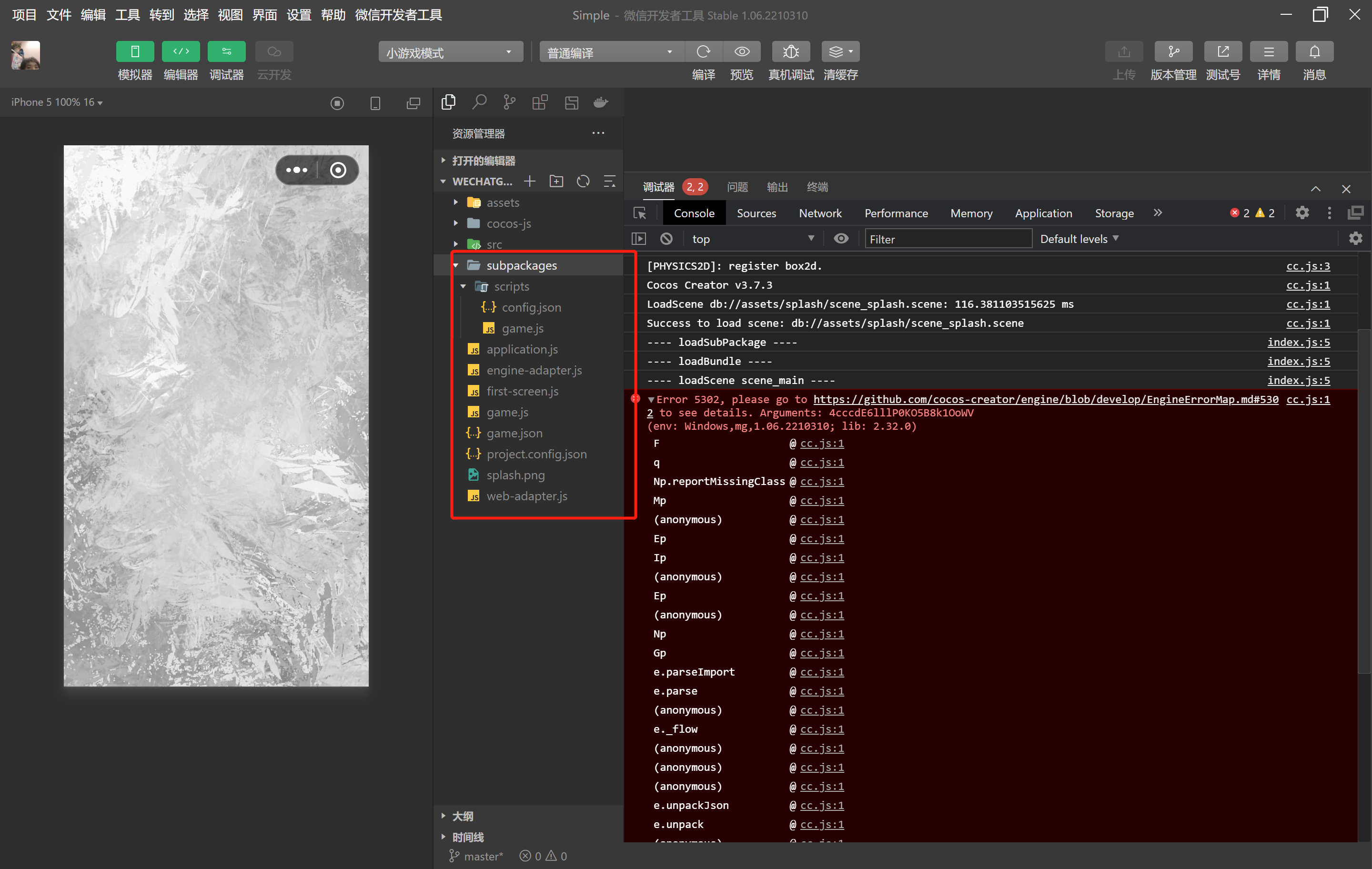 编译后的小游戏项目和报错
