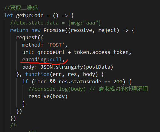查了半天看到一个博客说加这个 encoding:null 后面的注释是 //指定编码 这个关于http请求的东西我真的是搞不懂,我反正也不做职业开发,自己做的玩代码能运行起来就可以了。