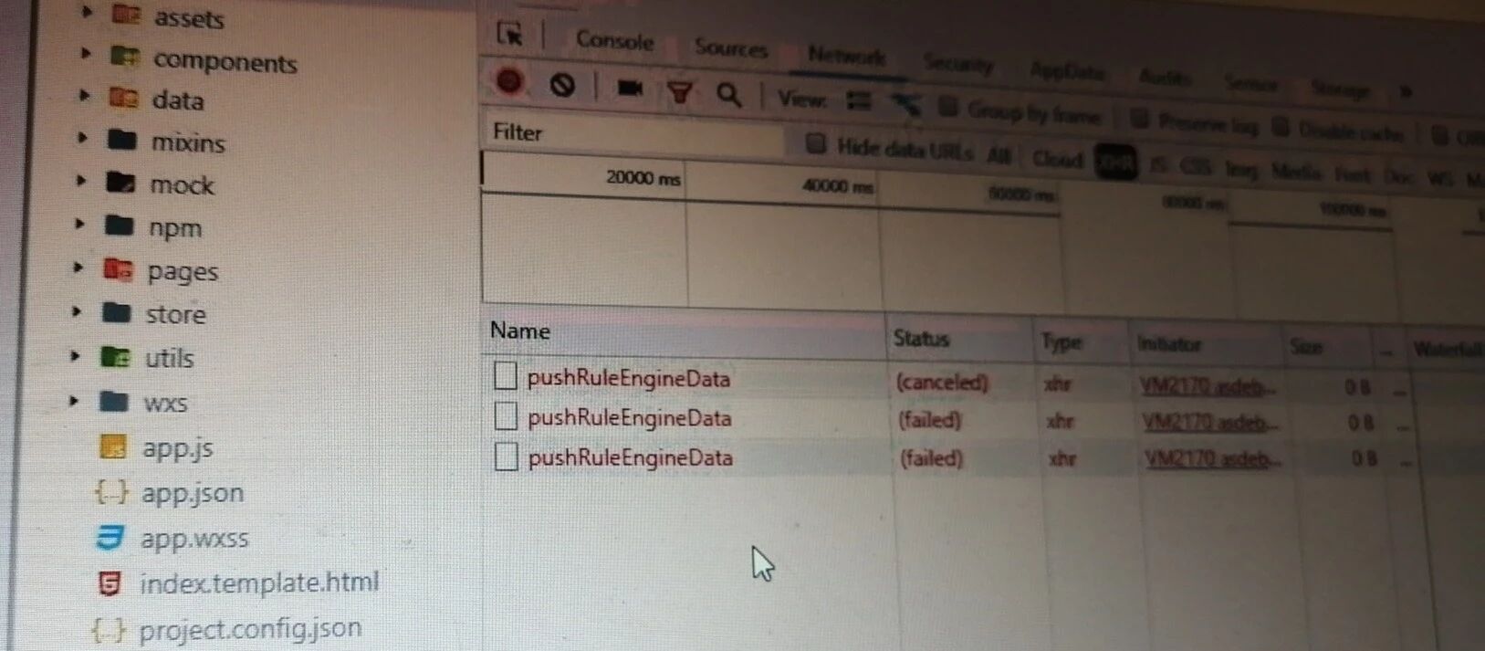 结果描述: 前端发起一次请求,超时60s,http 请求status 报 canceled , 一切正常。再次发次请求,耗时40s,http 请求status 报 failed, 没有达到最大时间 不正常, 再次调取,耗时20s,http 请求status 报 failed 后端日志 显示 在一次调取时间内,微信重推 大概 10s/次 ,不正常。