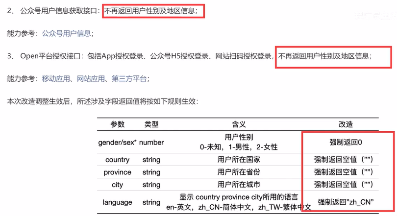 以下是最近获取用户信息的返回值,除了["openid"]、["nickname"]、["headimgurl"]、["unionid"]这些都有,其他都返回空字串,是怎么回事呢?