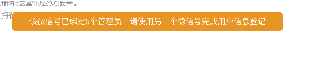 在注册新的小程序时一直提示:“该微信号已绑定5个管理员,请使用另一个微信号完成用户信息登记”