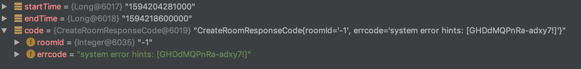 {roomId='-1', errcode='system error hints: [GHDdMQPnRa-adxy7!]'}