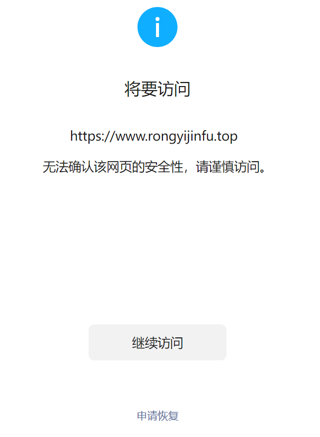 访问时提示如下:无法确认该网页的安全性,请谨慎访问。