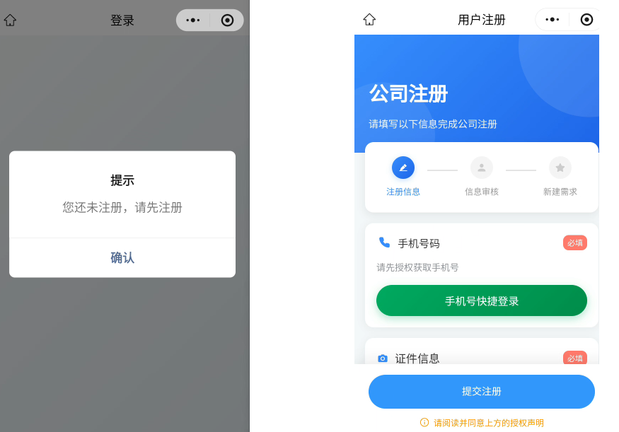 一个微信是一个账号账号,如果注册过会进行静默登录,没有注册需要先注册才能登录。里面的内容都是基于注册账号后才能进行使用,请问这样要怎么解决。目前在注册的页面右上角提供了一个开关 临时登录 的按钮,在备注 中提供了测试账号密码。但是无法审核通过。审核退回就提示 你好,小程序内无实质业务服务,功能体验不完整,请完善业务功能服务,再提交代码审核。提供了测试账号密码,审核人员都还没到系统内部就已经报错退回了