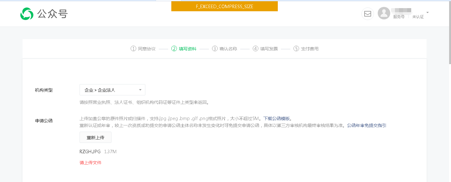 如图,在提交公函时一直提示F_EXCEED_COMPRESS_SIZE错误,图片尺寸是1.37M,小于要求的5M。