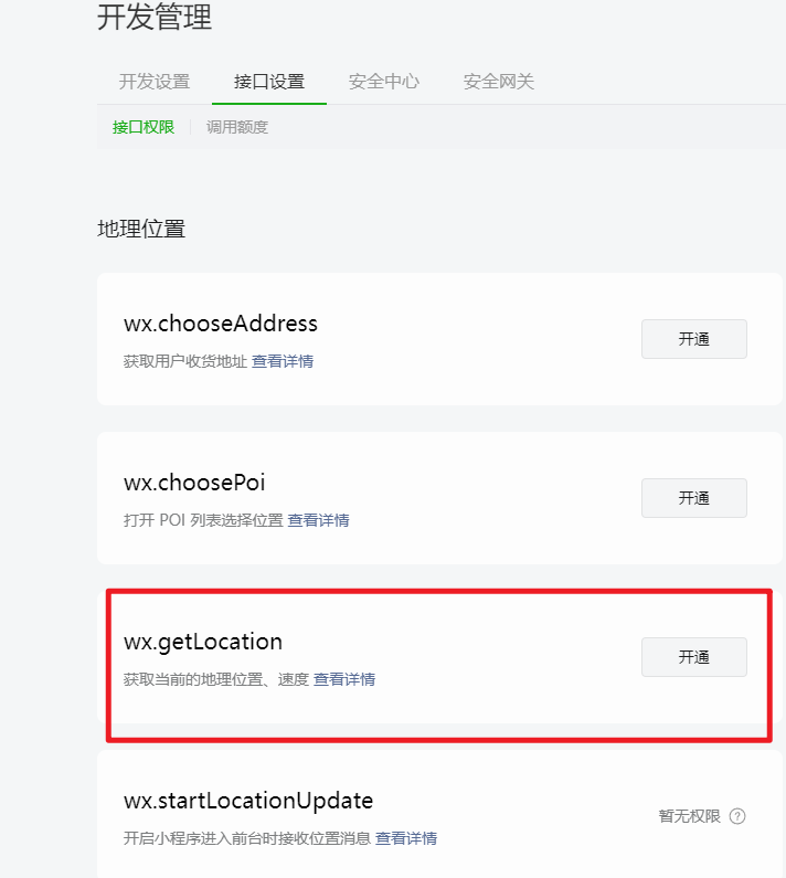 wx.getLocation是需要登录小程序后台,在开发管理菜单的接口设置里申请的