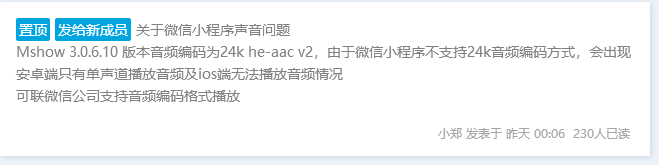 现使用Mshow云导播台,进行小程序推流直播,所有ios端(任意苹果手机)观众观看会出现没有声音。但是华为安卓手机是正常的。