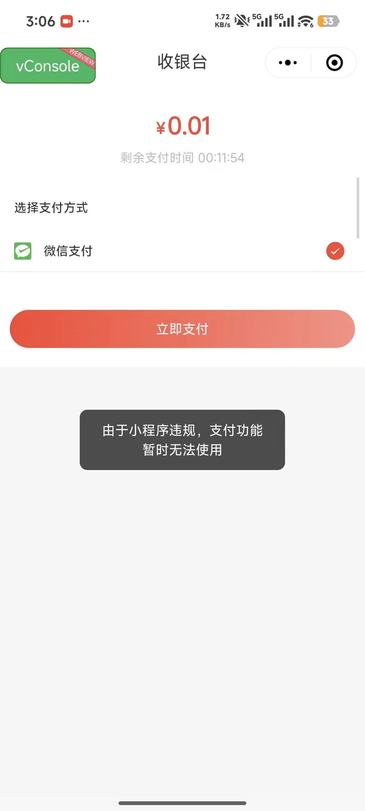 小程序支付提示违规但小程序后台未显示违规记录 官方能出来看一下什么原因嘛