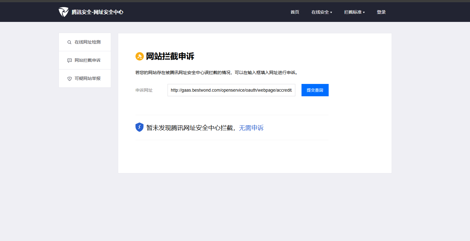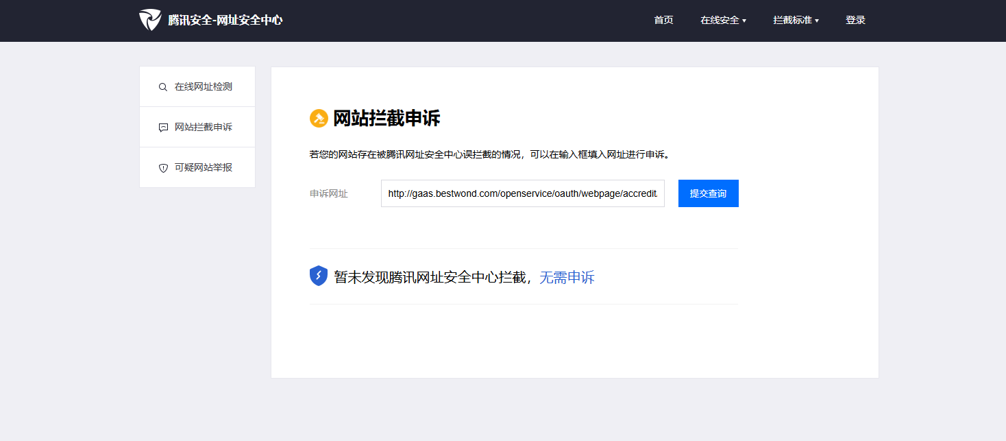 你好,请提供具体链接以及点击链接时出现拦截页的微信号、时间,以便我方核实。
