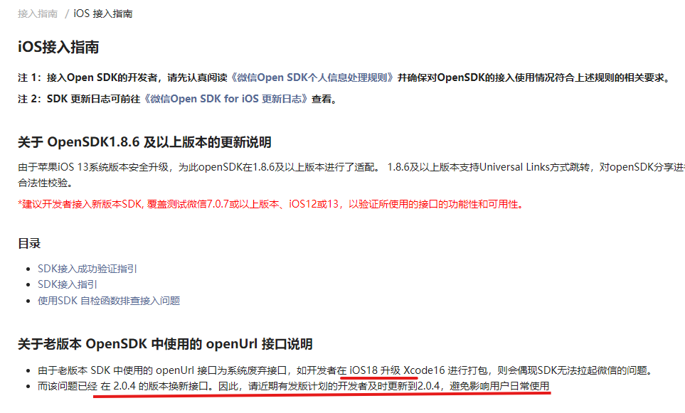 就是现在iOS,app使用的SDK版本是1.9.2,然后目前iOS系统15.4的功能正常,但是很多iOS18+以上的系统,调用拉起小程序,会先跳到微信,显示正在连接,然后立马返回到app,然后就无事发生了,同样在医保支付的时候,需要获取open_id的时候,同样iOS15.4系统正常获取,iOS18+以上的系统,也是跳转到微信显示正在连接后,立马返回app了,请问这个问题,可能出现的原因是什么?然后有解决方案吗?非常感谢!