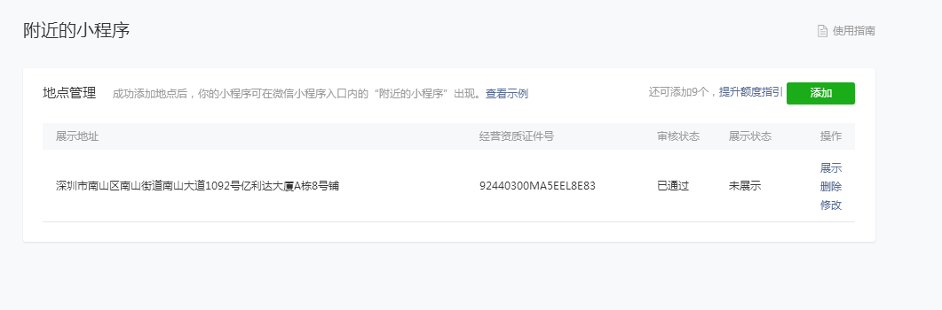 附近小程序无法展示https://developers.weixin.qq.com/blogdetail?action=get_post_info&docid=00008a742383682a6166e4d635b000&highline=%E8%AF%B7%E5%85%88%E5%8F%96%E6%B6%88%E5%B1%95%E7%A4%BA