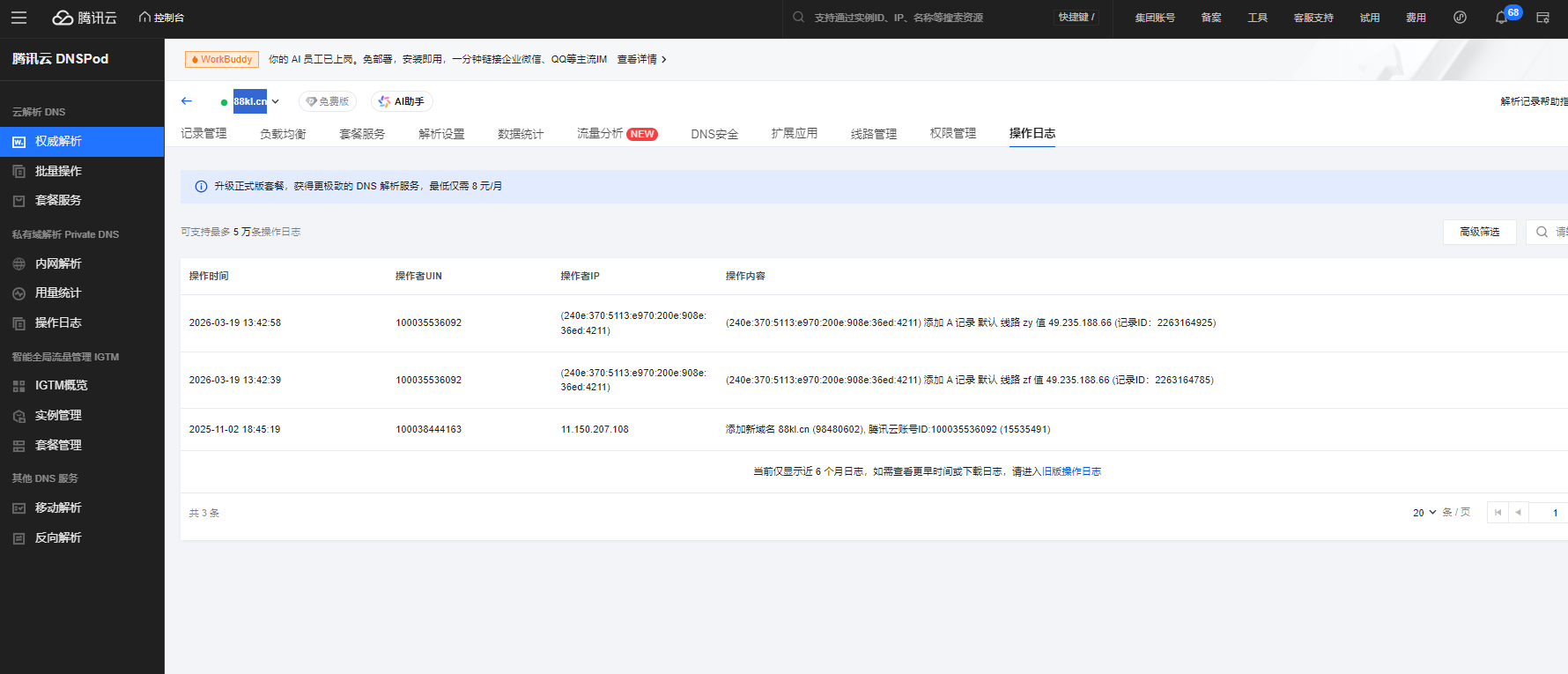 我去年注册的域名,注册的时候我在微信访问了,可以访问我才注册的,注册备案后,一直放在那里,没有使用过,域名:88kl.cn