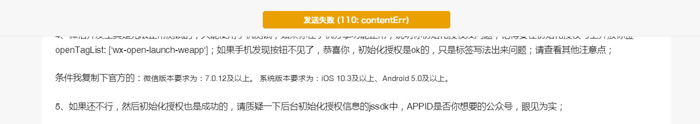 文字有违规内容 就会出现这个。。我上次发送彩蛋两个字 也报错。别人发就正常。和其他一些文案 一组合 也报错。