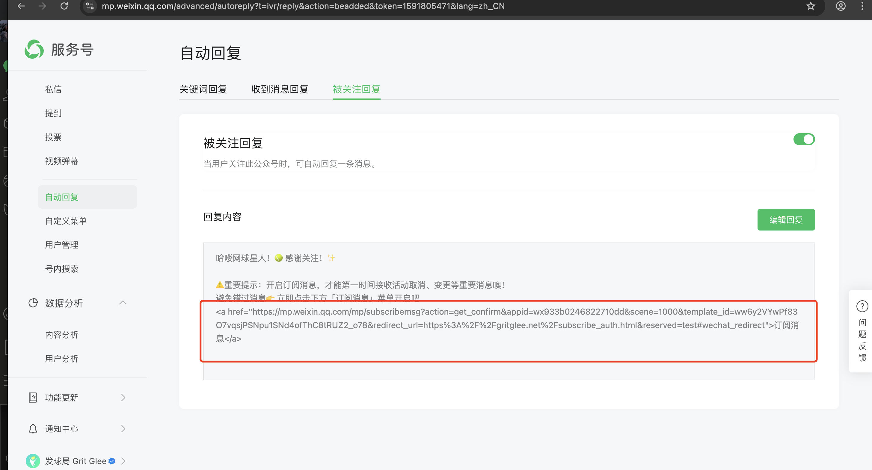 自动回复调用链接如下: