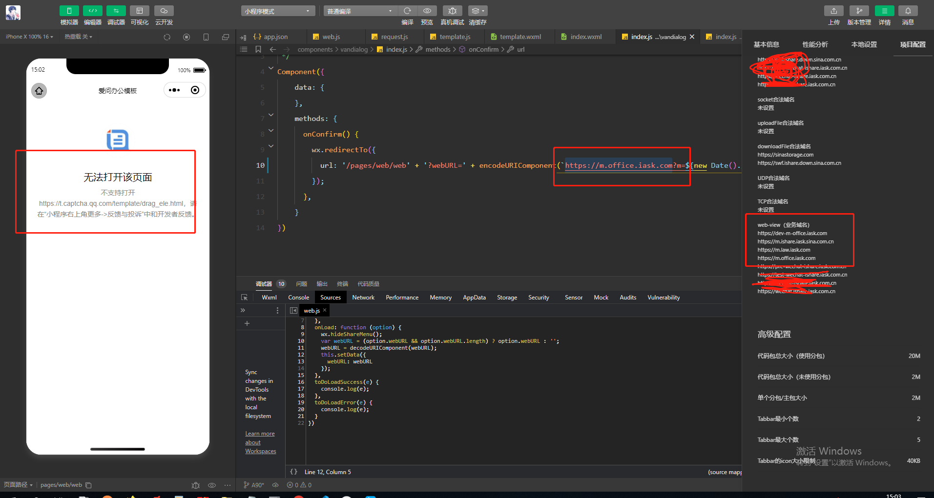 把无法打开的那个域名添加到业务域名里面