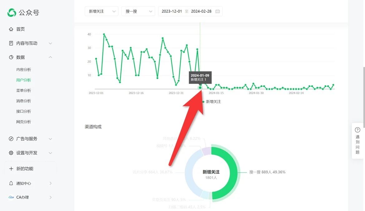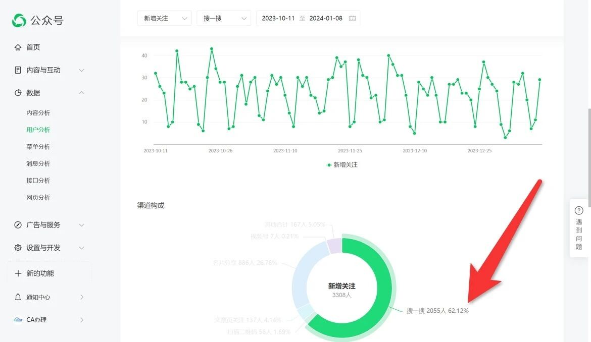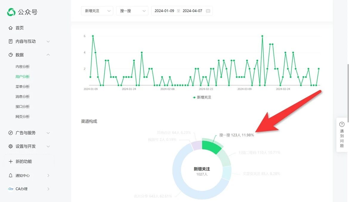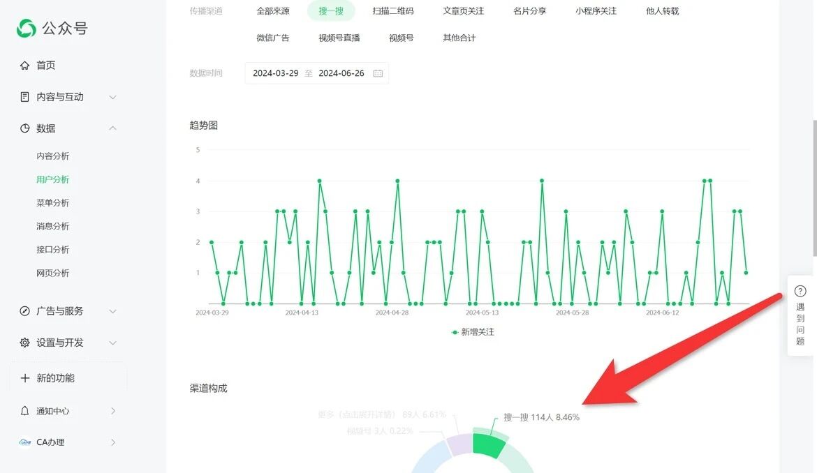 本公众号从未收到过任何处罚通知,但是搜一搜seo排名严重异常,2024年1月9日前搜索相关的关键词都能看到排名,我查看了用户分析数据,1月9日前3个月搜一搜关注的用户占比62.12%,从 1月9日往后3个月搜一搜关注的用户占比11.98%,从6月27日往前3个月搜一搜关注的用户占比8.46%,而现在只有精准搜索“CA办理”我的公众号才会出现,这个公众号是通过微信认证的,本来认证关键词权重会高,搜索排名会靠前,而我的公众号被针对,那我花钱认证的意义是什么?