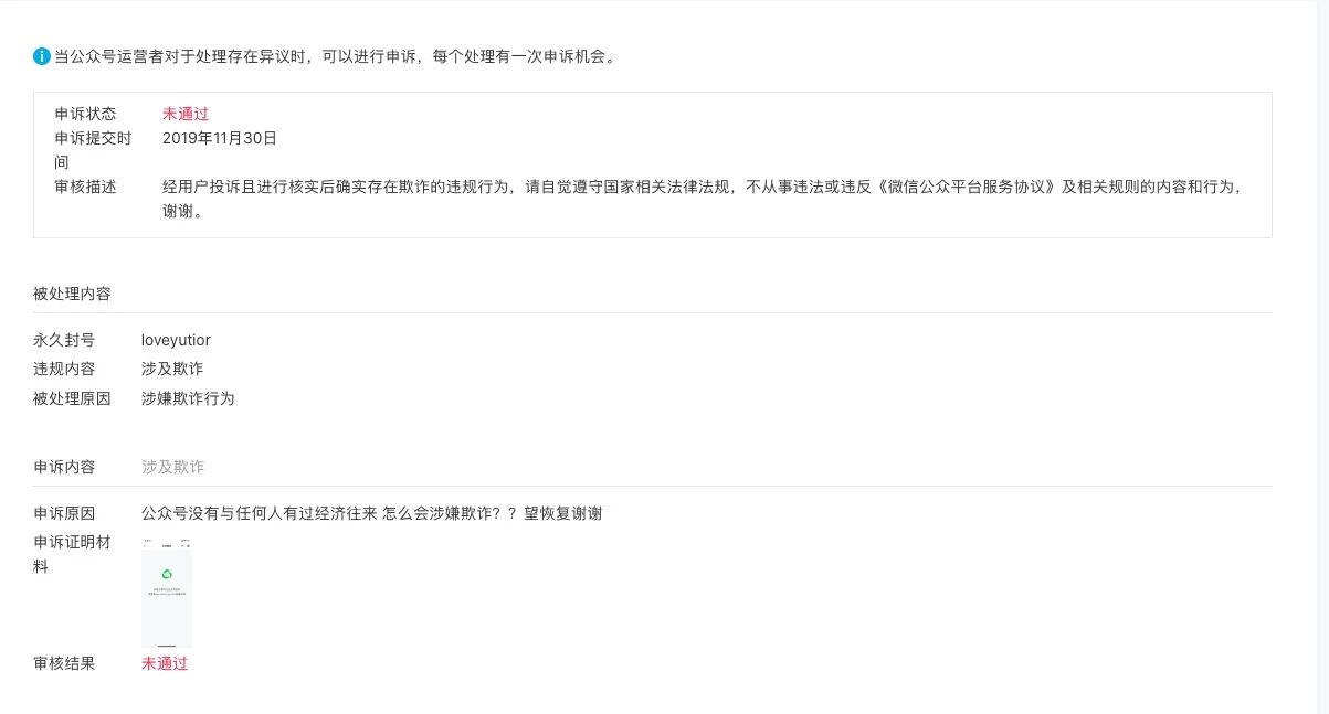 主要作为内部分享材料使用 没有任何销售行为 也没有任何营销活动行为 也没有弄什么下单的转发的小程序啊之类的 运营了3年多的公众号一点提示都没有说封就封了 怀疑是同行恶意举报被误封 希望帮忙解决一下拜托了 或者至少是哪里违规了 也让我知道一下