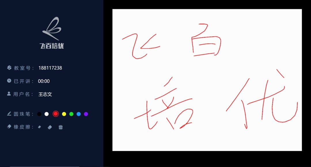 然后点击“”登录“”按钮进入到主页面(左边是操作区,右边是白板,即可在白板上写字,注意这里只对触控笔和触摸有反应,鼠标不能正常书写)