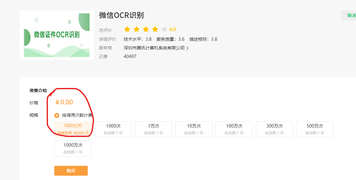 免费100次的也需要手动购买的,价格为0。没买的话没有额度