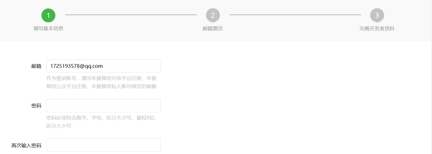 可是点进去还是重新注册页面,之前我明明完成了注册,现在应该进行的是完善开发者资料。可我不管怎么点击,只能先注册,但我在之前qq邮箱已经申请,写完我有被提示qq邮箱被占用。完全迷茫了,不知道怎么操