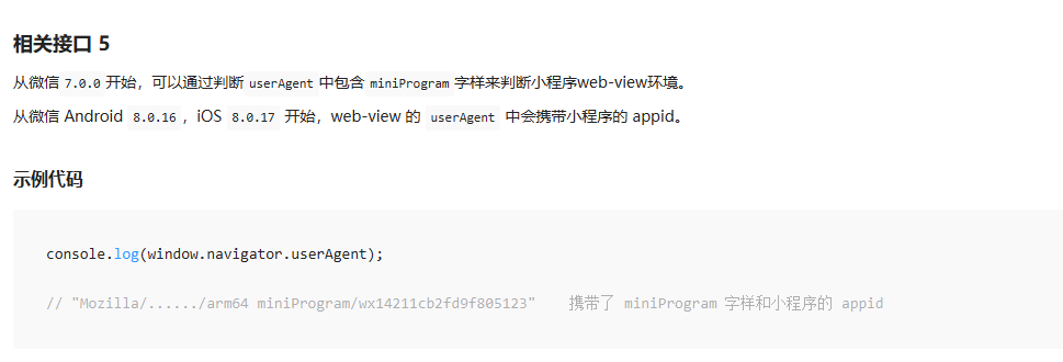 作为SaaS服务商,我们的H5可以嵌套在不同的三方小程序里,同时也会嵌套在我们的小程序里,在H5我们想区分是三方小程序还是自己的小程序,一种方案是url上传参,另一种方案是通过userAgent里的miniProgram/wx.... 里的appId来区分,第一种方案由于小程序H5页面的入口太多,要改造的地方很多很容易漏掉,所以不太推荐。第二种方案通过appId来判断可靠吗?会不会有的机型webview的userAgent里没有appId?官方后续会不会删掉userAgent里的appId?