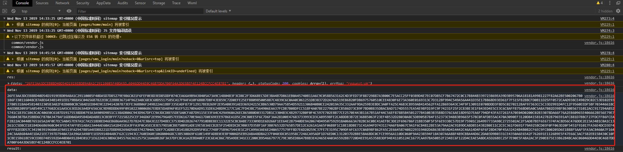 使用wx.request发起post请求,在开发者工具上能获取到正确的返回数据,如图所示,返回的res.data的长度为3360