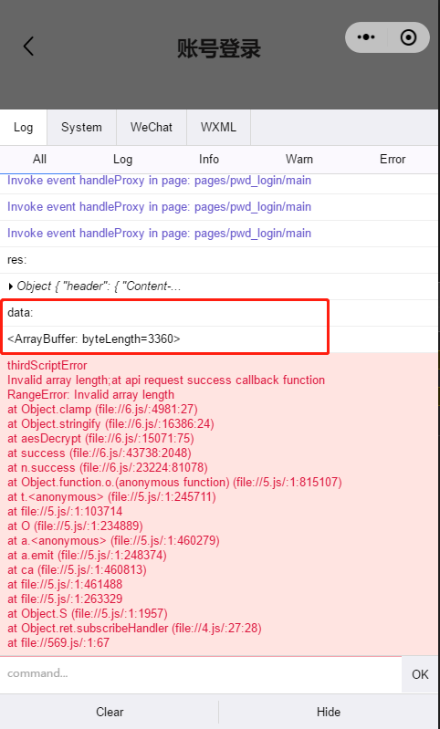但在pc上上会报错,提示:“thirdScriptError Invalid array length;at api request success callback function RangeError:Invalid array length”,返回具体数据如下图所示: