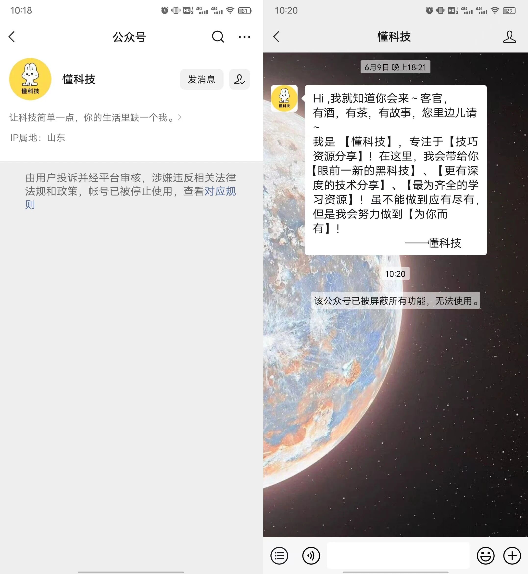 官方大大,您好 实在抱歉打扰到您。公众号名称<懂科技>,原始id因账号封禁已经无法查看。这个公众号是我刚刚注册,还未进入运行, 关注用户12 首先没有任何盈利,零篇文章 ,小程序也是昨天刚刚链接上的 由此可见 应该是小程序的内容不适,本公众号运行者将会对小程序删除处理,也会承诺将会杜绝此类内容,公众号只是简单的注册昨天链接了一个小程序,希望官方大大可以公平公正的审核一下。谢谢