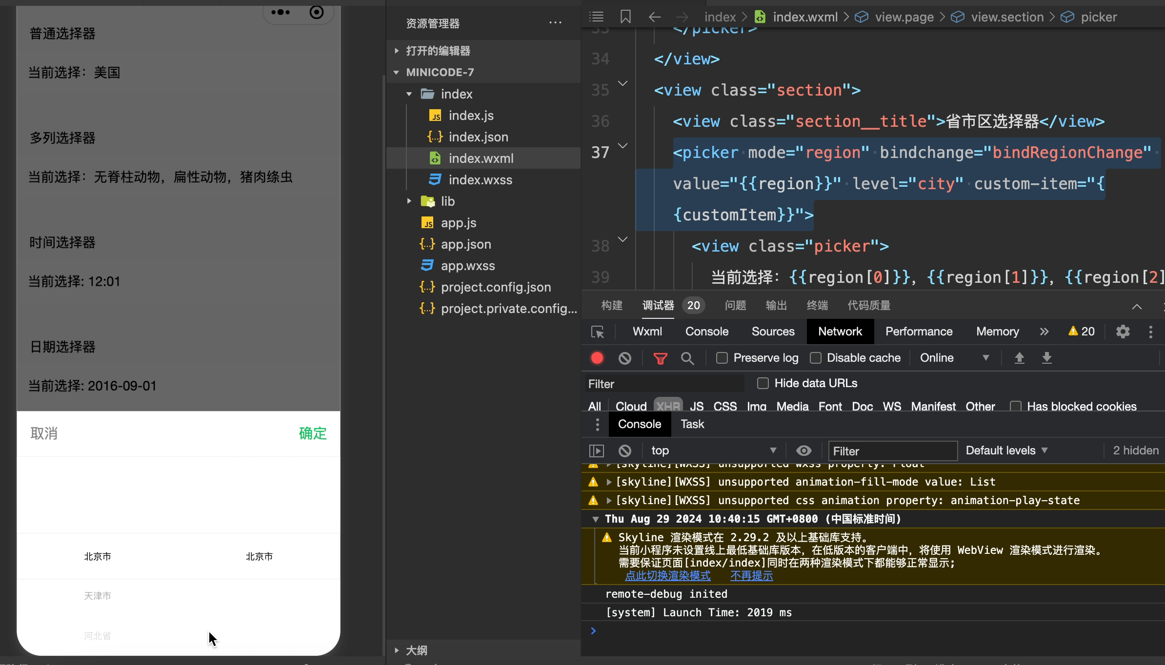 <picker mode="region" bindchange="bindRegionChange" value="{{region}}" level="city" custom-item="{{customItem}}">