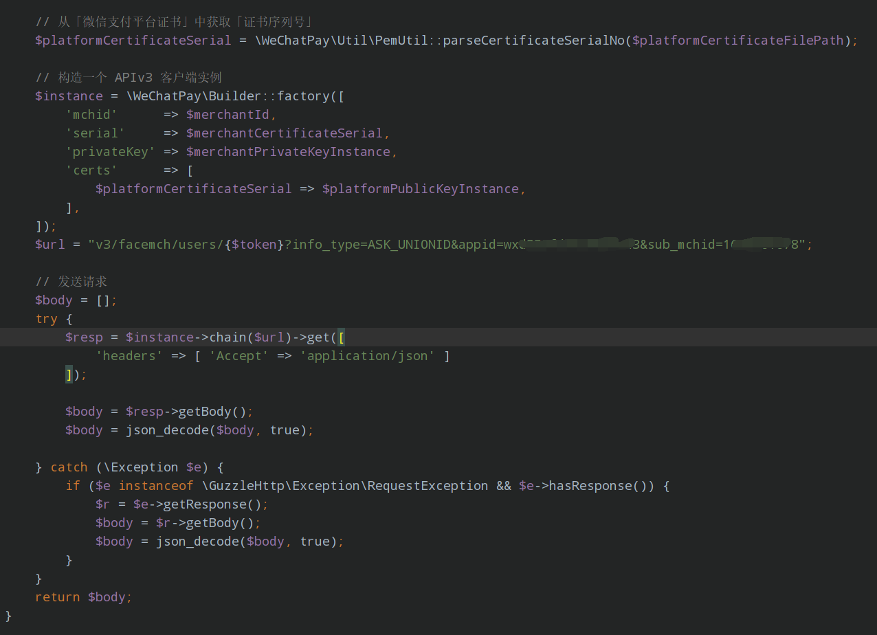 chain('v3/facemch/users/{face_sid}')->get([ 'face_sid' => $token, 'query' => [ 'info_type' => $infoType, 'appid' => $appid, 'sub_mchid' => $maybeSubMchid, 'sub_appid' => $maybeSubAppid, ], ]);我把sub_mchid去掉了,返回:info_type值无定义,真的要奔溃了