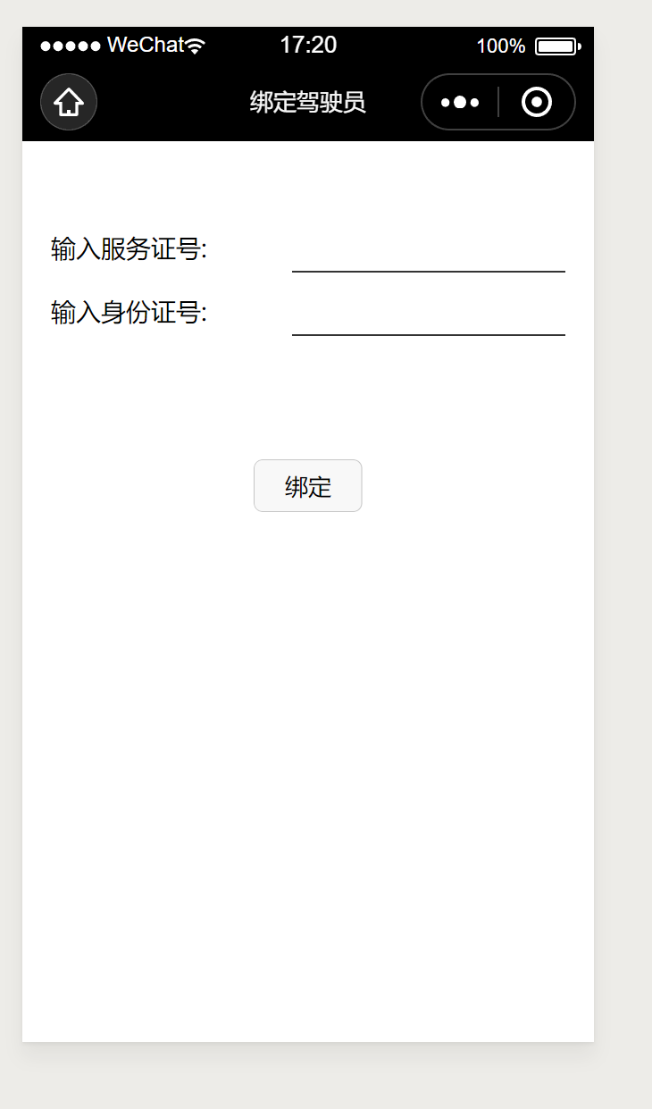 这个小程序供成都一部分公司出租车司机使用,第一次使用的时候需要绑定司机信息。无需注册流程,只要直接绑定即可
