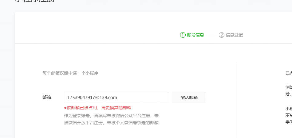 这个邮箱我今天早上填这个的时候还能用,早上我填到这个信息登记的时候退出了,并没有注册成功,现在再注册就用不了了,这是为啥?