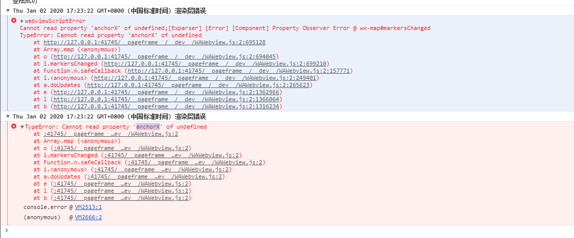 使用开发工具调试基础库2.10.0加载地图map组件会出现Js异常,而转为使用2.9.4则不会。