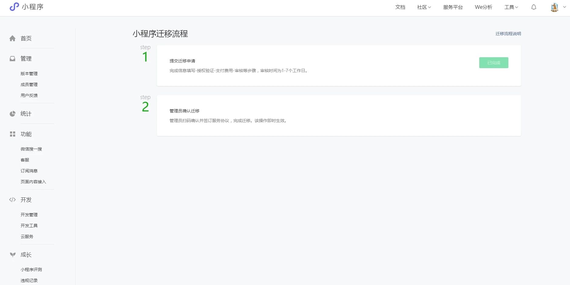 你好,公众号/小程序相关迁移问题请在微信--发现--小程序--搜索腾讯客服--选择公众平台业务提单,后续会有相关的人员及时跟进。 请参考知识库提单腾讯客服:https://developers.weixin.qq.com/community/develop/doc/0002eefc664c1043cbbb531ea5b009