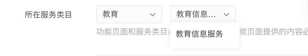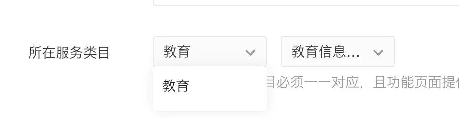 我们需要选择类目,可是可选类目下拉菜单中只有一个【教育】,二级下拉菜单中,也只有一个【教育信息服务】,请问如何选择其他类目