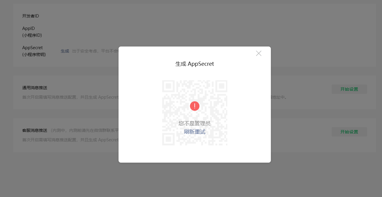 确认是管理员扫的二维码,也更换过浏览器,都提示不是管理员