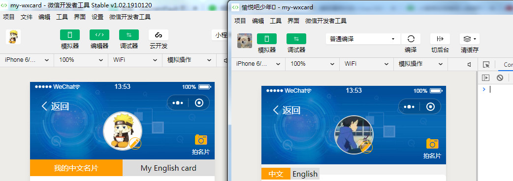 多账号开发 开发工具bug,左边是修改好的样式,右边是修改了刷新没有同步