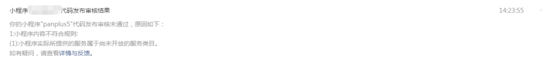 砍掉微信支付之后,用另外同主体同类目的小程序(wx7c675b17bc34fb39 )审核又回到了尚未开放的服务类目
