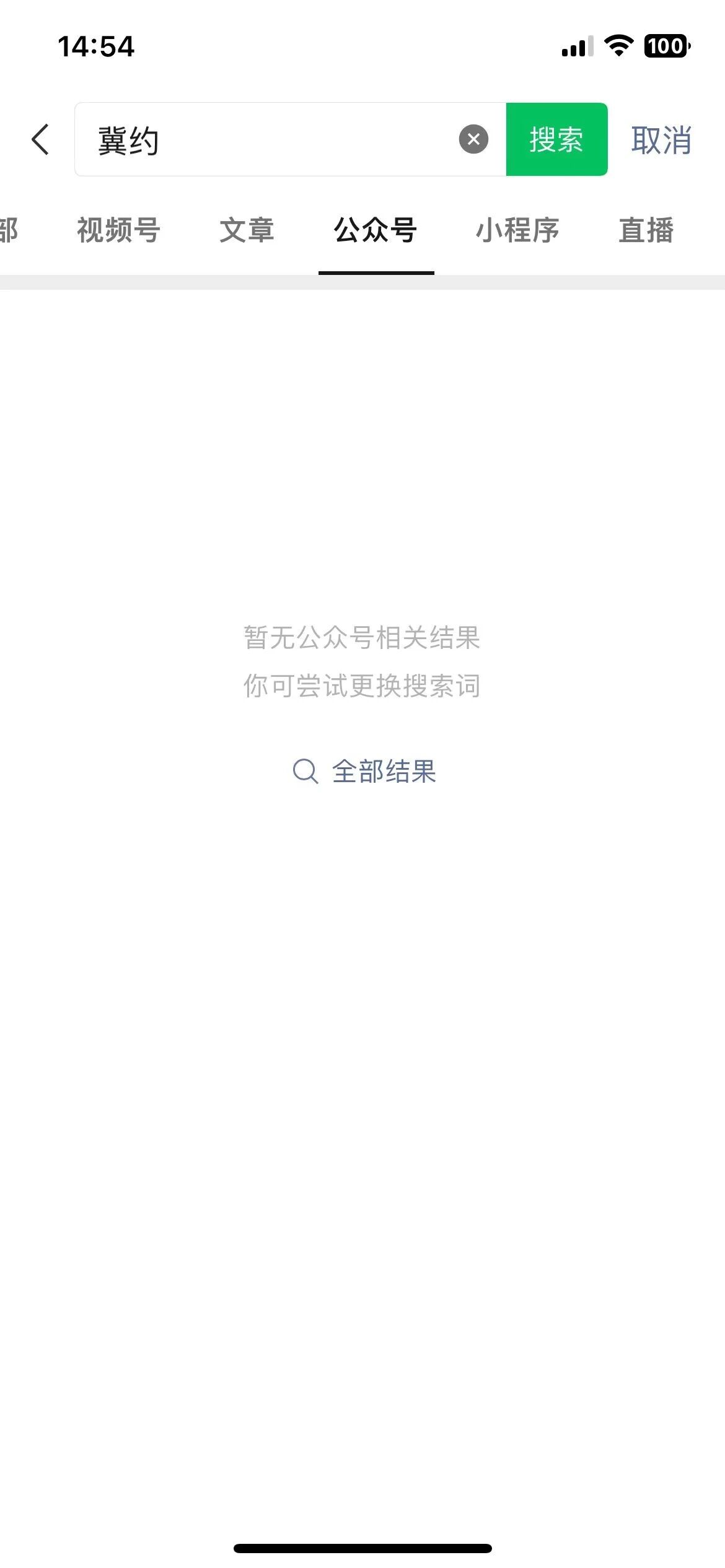 微信搜一搜输入:“冀约”,公众号无显示,小程序也无显示
