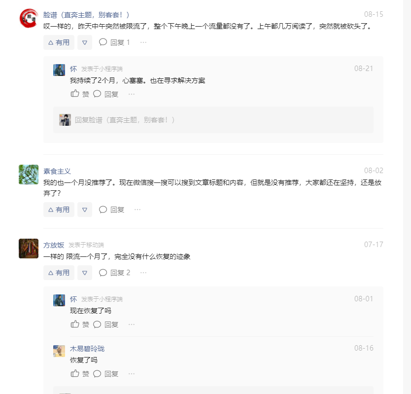 听说公众号今年改了信息流推荐模式,新号也有机会获得大流量,我们做了很多年自媒体,头条号百家号等,对于信息流推荐算法还是比较了解。于是赶紧入场测试了一下,结果发现一个惊天大BUG,所有的新号只要你爆过文,立马就会被限流,直接开始O推荐!跟很多自媒体同行都交流过,全部是这个问题。我想请问公众号官方,你们是不是把搞网络诈骗的代码写进推荐算法里面去了?开局给你点甜头,让你觉得此事大有可为。然后偷偷限流账号,让你后面付出的努力全部付诸东流,请问这么操作的意义何在?