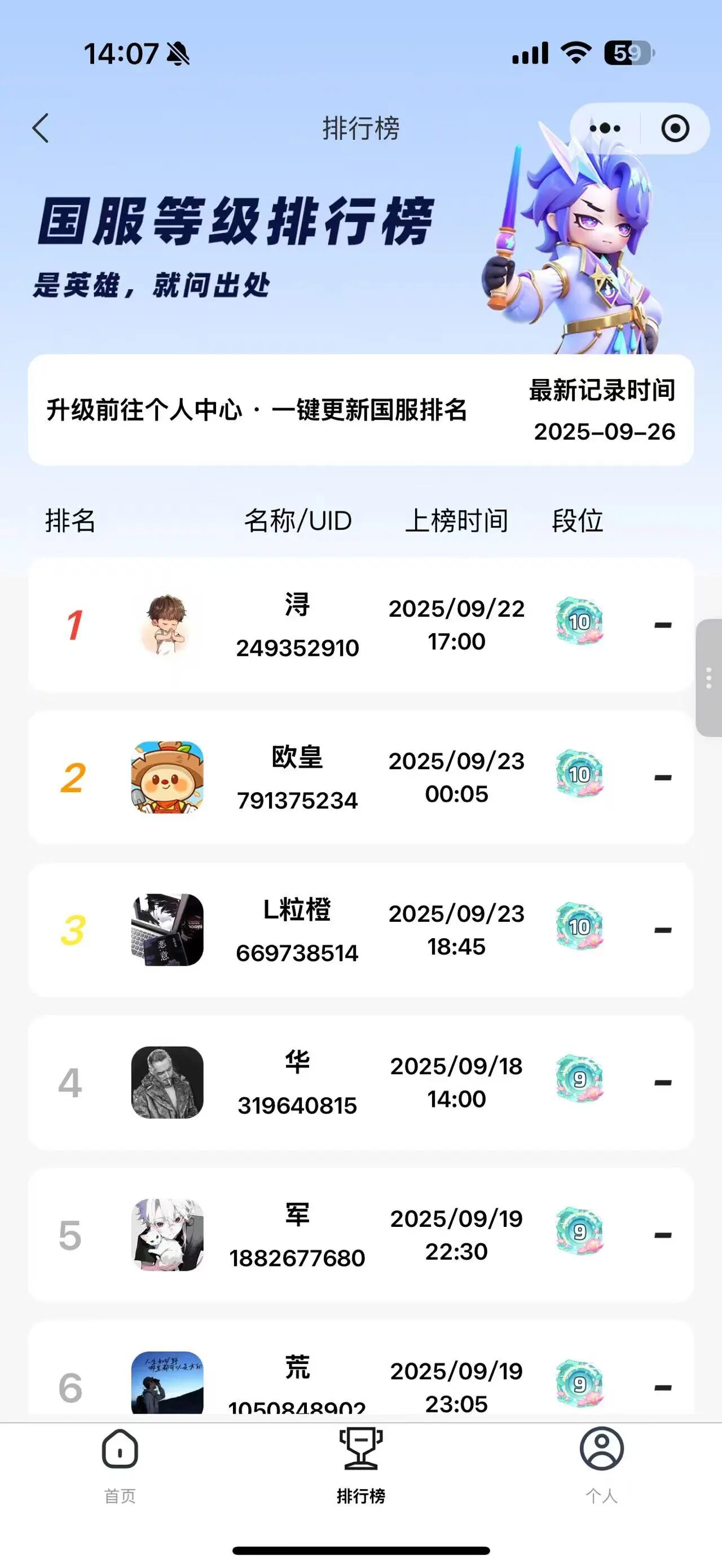 包含“玩家名称、uid、段位和升级时间”,小程序再比对排名,形成当前的页面。