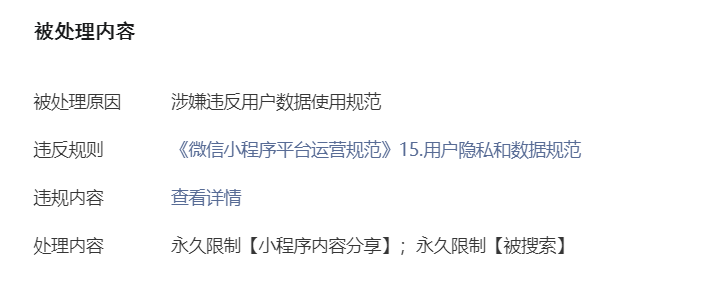 现被告知,由于用户举报,涉嫌违反用户数据使用规范,被禁止搜索和分享,