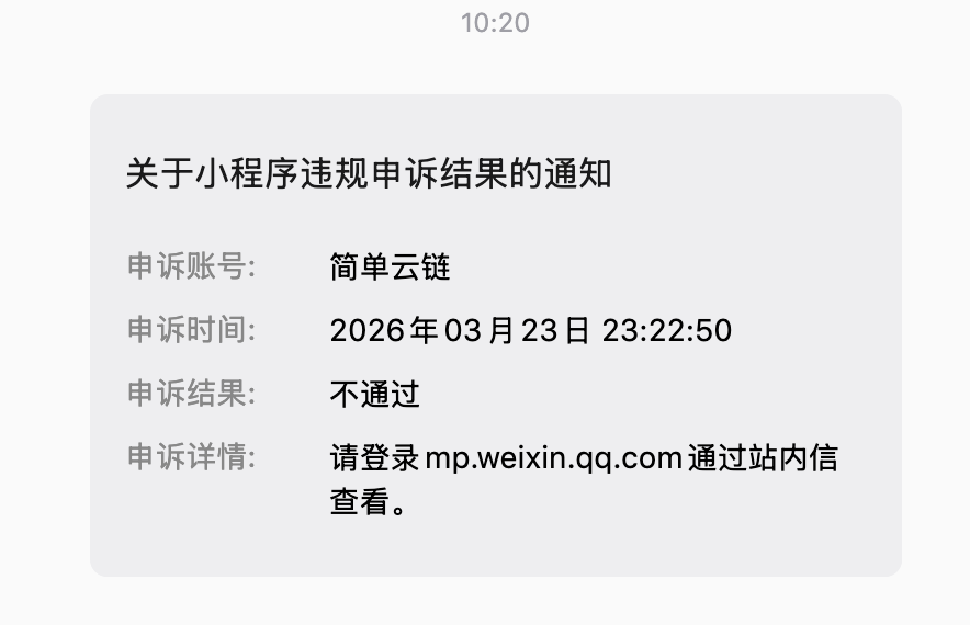 做了 3 年小程序,兢兢业业运营,有问题积极整改,但是最终以莫须有的罪名给封号,完全不给任何解决方案,叫天天不应叫地地地不灵——