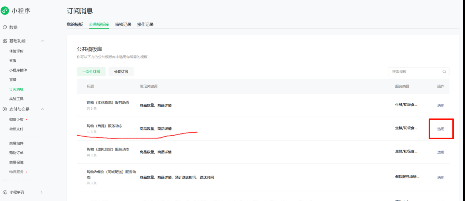 api链接:https://api.weixin.qq.com/wxaapi/newtmpl/gettemplate