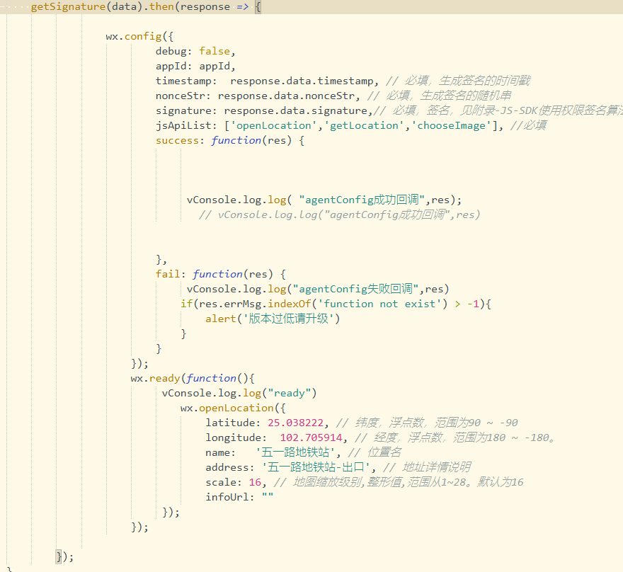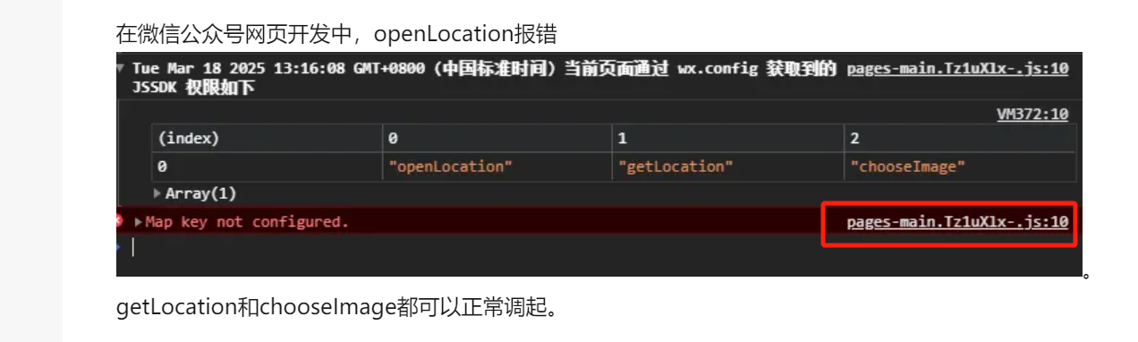 在微信公众号网页开发中,openLocation报错。getLocation和chooseImage都可以正常调起。