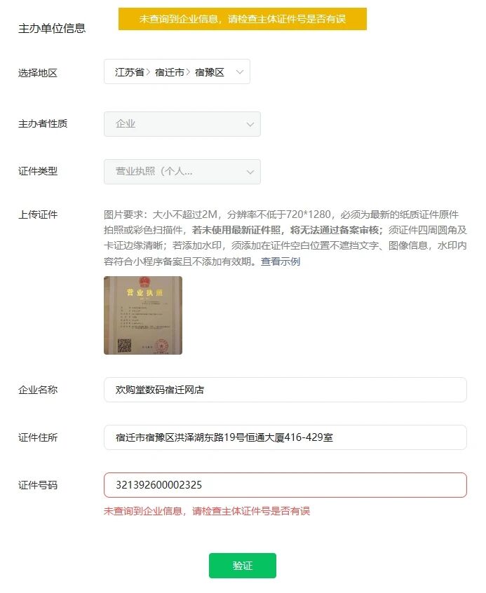 2.若为新建企业或近期有做信息变更,可能会存在企业工商数据更新延迟的情况,建议过段时间(5~15个工作日)再进行重试。
