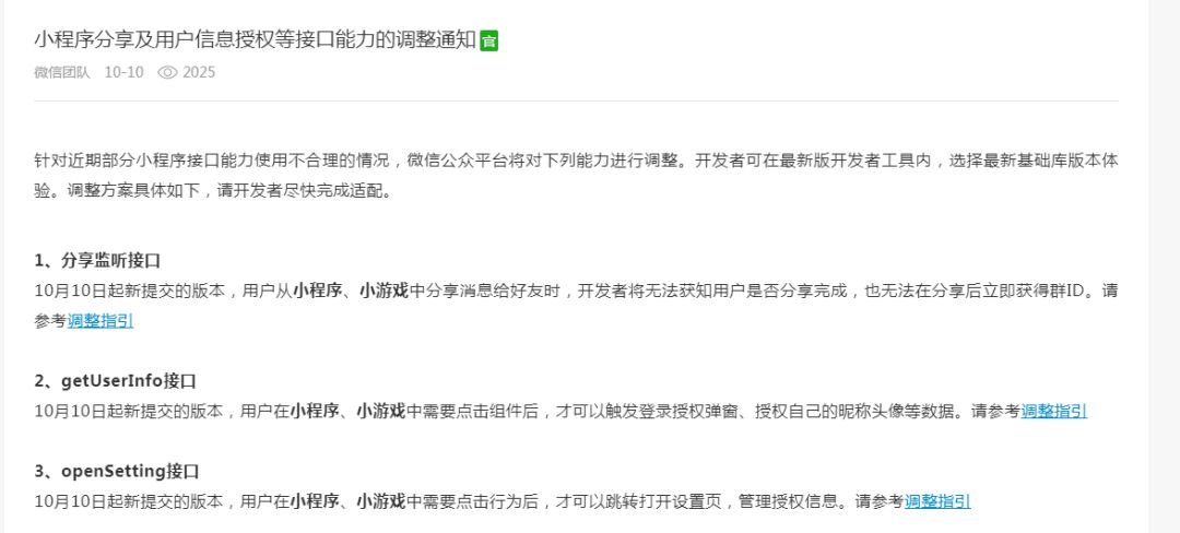 关于授权的问题,我发现在IOS中,删除小程序后重新打开,默认为第一次进入,可以正常唤起权限授权,频繁尝试也可以生效,也就是说删除掉小程序后,不会触发授权无法在短时间内重复唤起的限制,但是在安卓中,即使你删除掉小程序后重新进入,却被系统认为在短期内唤起过授权弹窗,无法重新唤起,这就造成一些需要授权的操作没有数据,当你通过打开授权页面手动开启授权时,里面没有任何授权功能,因为你重新打开后没有唤起过授权请求,针对问题查过,没有详细的论断,官方给出的解决办法是关闭微信进程再打开小程序。